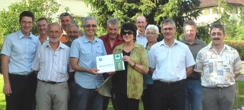 Juni 2009: Die Initianten des Cheisacherturmes dürfen aus den Händen des Gemeinderates Gansingen die Baubewilligung entgegen nehmen.